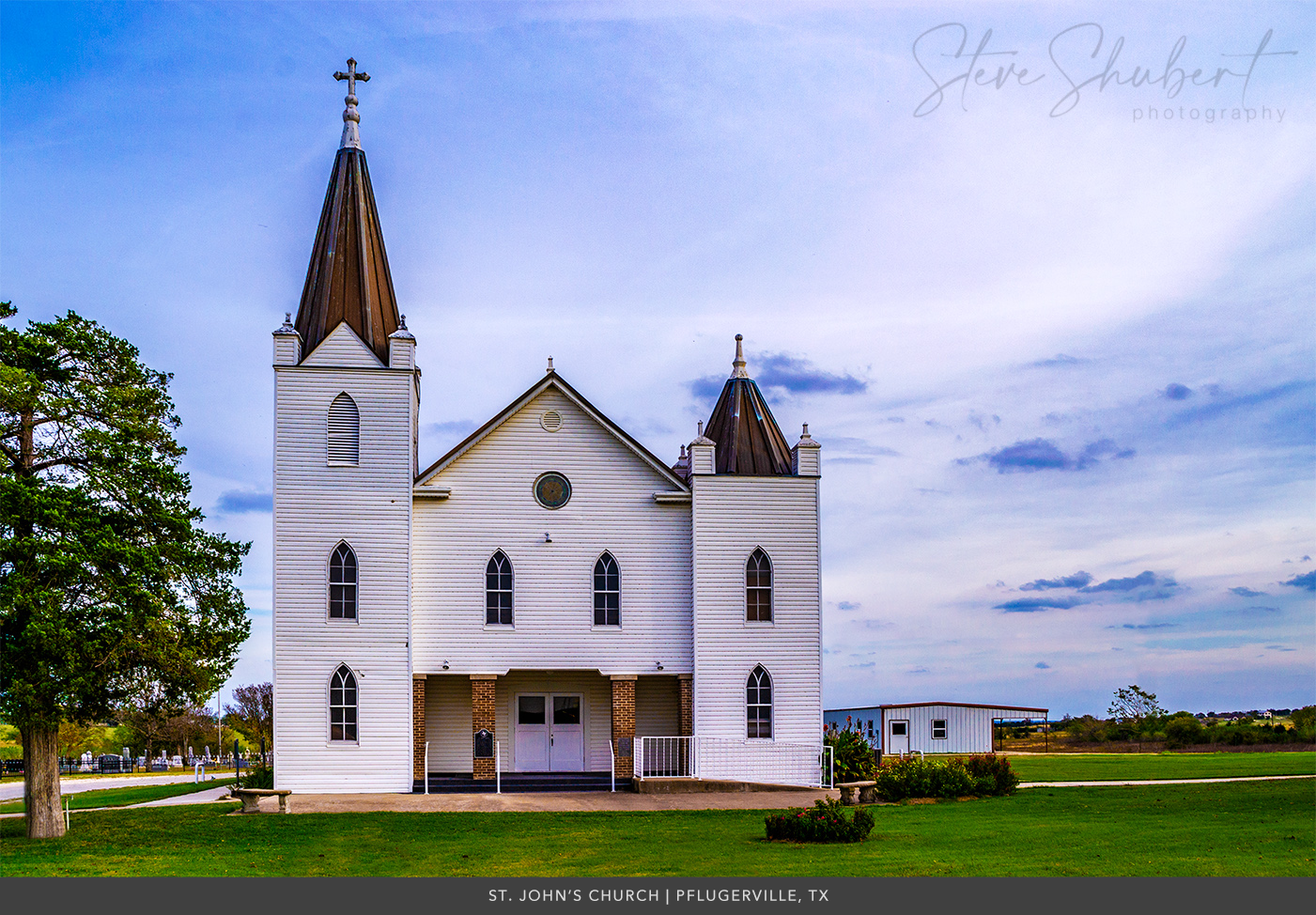 The New Sweden Lutheran Church, located outside of Manor, TX is one of my personal favorites to date. A friend had clued me in that it was "the most photographed church in Texas", so on a quiet Sunday evening, I made a little trip down there. Not only was the church beautiful (and yes, very photogenic!) but the setting itself was delightful. The church was surrounded by cornfields and open pasture, there was not another soul around, and the silence, the fragrances of a summer evening, and accompanying chorus of insects still remains vividly in my mind. Divinely perfect!